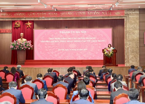 Sáng 12/02/2025, Ban Thường vụ Thành ủy Hà Nội tổ chức hội nghị công bố các Quyết định về thành lập, kết thúc hoạt động các tổ chức Đảng.