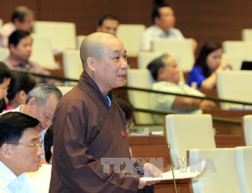 Đại biểu Quốc hội - Hòa thượng Thích Bảo Nghiêm phát biểu tại Hội trường. Ảnh: An Đăng - TXXVN