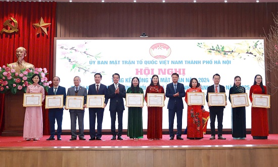 Tại hội nghị, một cá nhân thuộc Ủy ban MTTQ Việt Nam thành phố được Chủ tịch nước tặng Huân chương Lao động hạng Ba. Thành ủy, UBND thành phố, MTTQ tặng Cờ, Bằng khen cho các tập thể, cá nhân có thành tích trong phong trào thi đua chào mừng Đại hội đại biểu MTTQ Việt Nam các cấp; các hoạt động kỷ niệm 70 năm Ngày Giải phóng Thủ đô và công tác Mặt trận năm 2024…