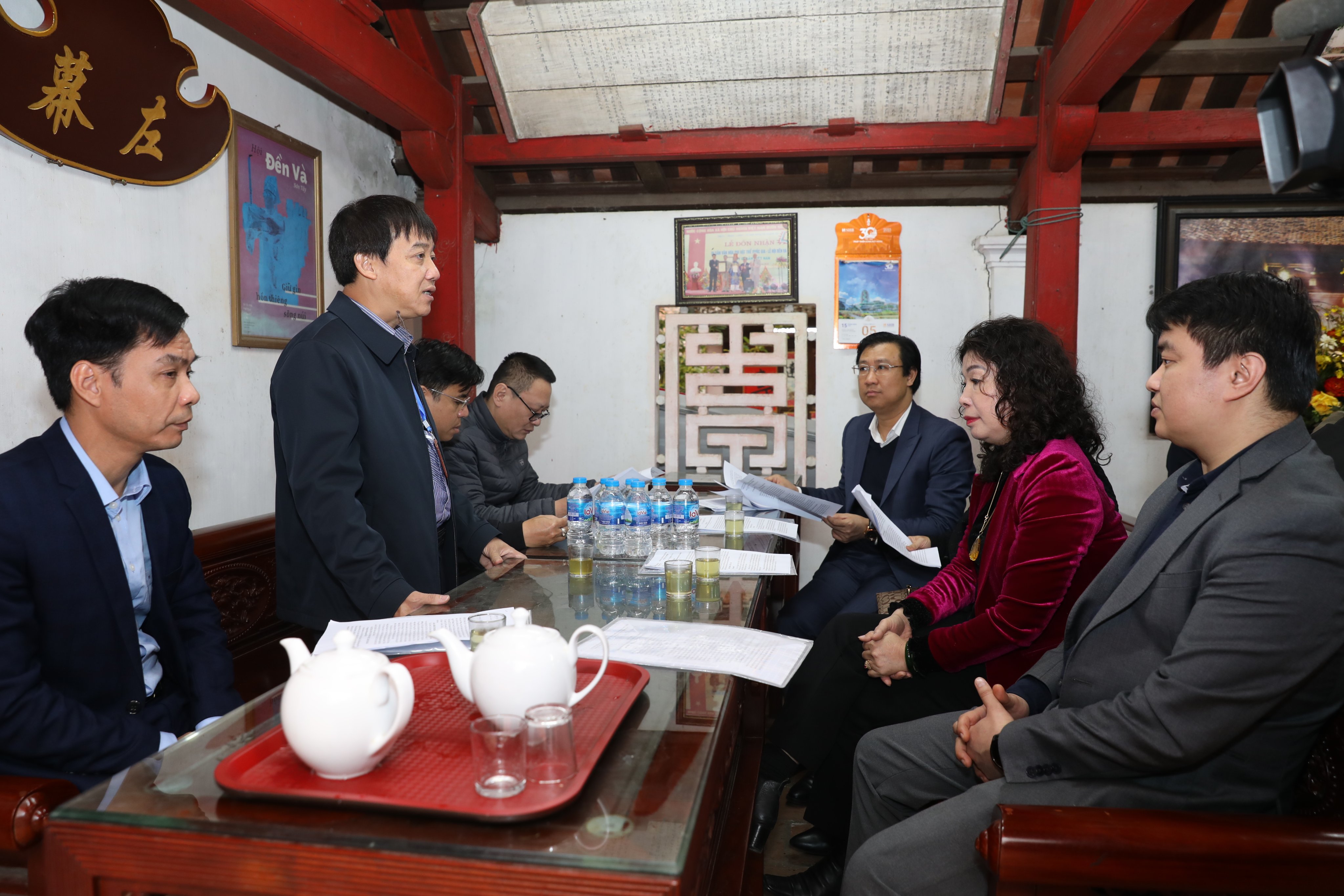 Đoàn khảo sát nghe báo cáo công tác quản lý lễ hội tại di tích Đền Và