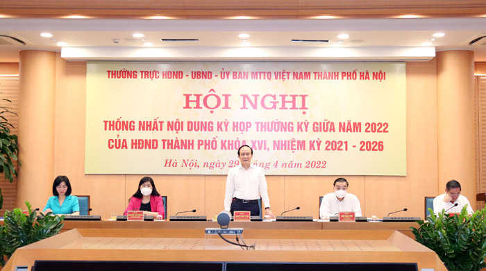 Chiều 29/4/2022, Thường trực HĐND, UBND, Ủy ban Mặt trận Tổ quốc Việt Nam thành phố Hà Nội tổ chức Hội nghị thống nhất nội dung kỳ họp thứ năm (kỳ họp thường kỳ giữa năm 2022) của HĐND thành phố khóa XVI, nhiệm kỳ 2021-2026.