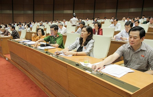 Các đại biểu Đoàn ĐBQH TP Hà Nội biểu quyết thông qua các dự án luật
