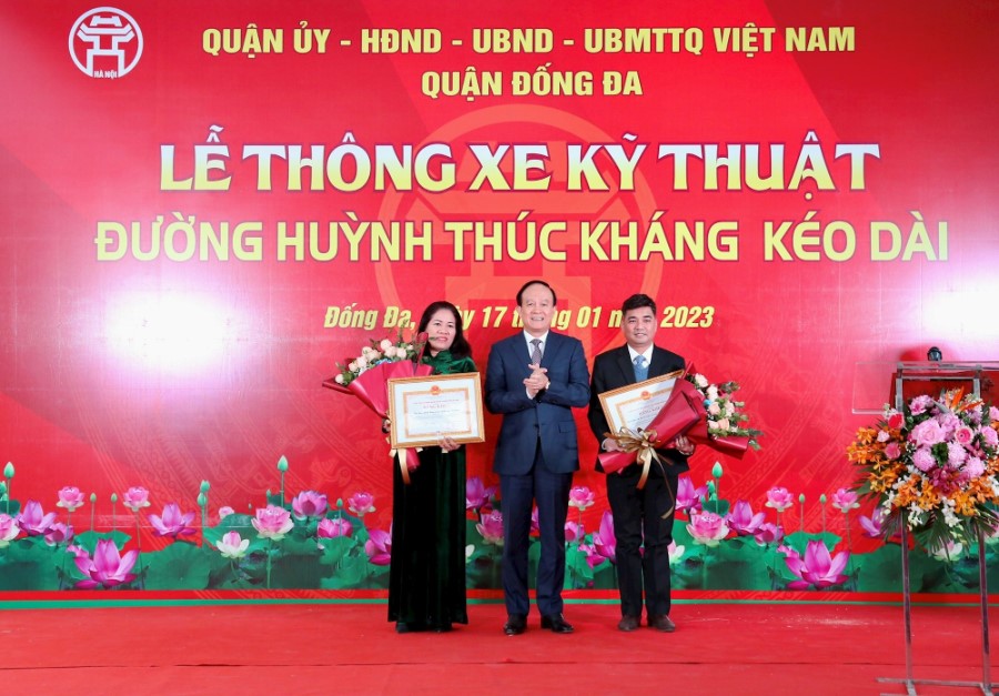 Sáng 17/01/2023, UBND quận Đống Đa tổ chức lễ thông xe kỹ thuật tuyến đường Huỳnh Thúc Kháng kéo dài. Đồng chí Nguyễn Ngọc Tuấn, Phó Bí thư Thành ủy, Chủ tịch HĐND thành phố, Phó Trưởng đoàn ĐBQH Thành phố, Trưởng ban Chỉ đạo Chương trình số 03-CTr/TU của Thành ủy và đồng chí Dương Đức Tuấn, Phó Chủ tịch UBND thành phố đã dự buổi lễ.