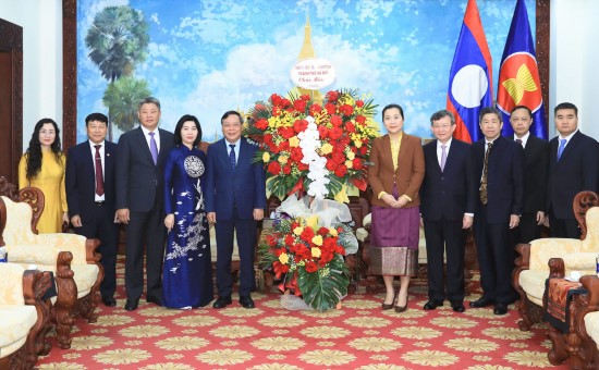 Chủ trì tiếp đoàn có Phó Đại sứ Lào tại Việt Nam Lattana Sihalat.
