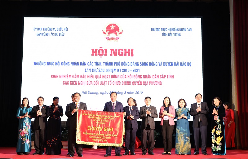 Sáng 30.3, tại Hải Dương đã diễn ra Hội nghị Thường trực HĐND các tỉnh, thành phố Đồng bằng sông Hồng và Duyên hải Bắc Bộ lần thứ 6, nhiệm kỳ 2016-2021 với chủ đề: “Kinh nghiệm bảo đảm hiệu quả hoạt động của HĐND cấp tỉnh và các kiến nghị sửa đổi Luật Tổ chức chính quyền địa phương".