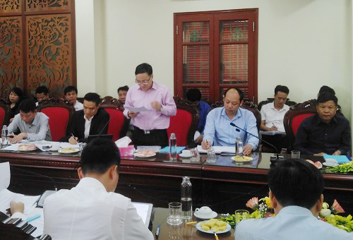 Ông Phạm Văn Đại, Phó Giám đốc Sở Giáo dục và Đào tạo báo cáo về quy hoạch mạng lưới cơ sở giáo dục trên địa bàn Thạch Thất
