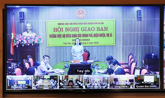 Thường trực HĐND Thành phố giao ban trực tuyến với Thường trực HĐND các quận, huyện, thị xã quý I/2023