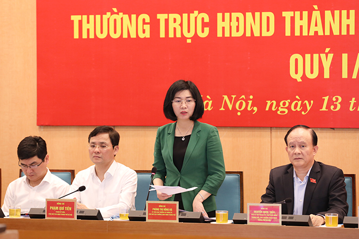 Phó Chủ tịch Thường trực HĐND Thành phố Phùng Thị Hồng Hà điều hành nội dung thảo luận