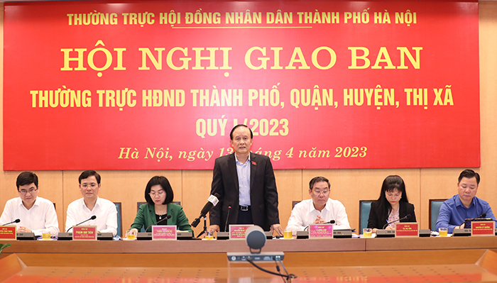 Sáng 13/4/2023, Thường trực HĐND thành phố Hà Nội tổ chức hội nghị giao ban với Thường trực HĐND các quận, huyện, thị xã quý I/2023. Hội nghị được tổ chức kết hợp trực tiếp và trực tuyến đến 143 điểm cầu quận, huyện, thị xã, xã, thị trấn với trên 1.200 đại biểu tham dự. Phó Bí thư Thành ủy, Chủ tịch HĐND Thành phố, Phó Trưởng đoàn ĐBQH Thành phố Nguyễn Ngọc Tuấn chủ trì hội nghị.