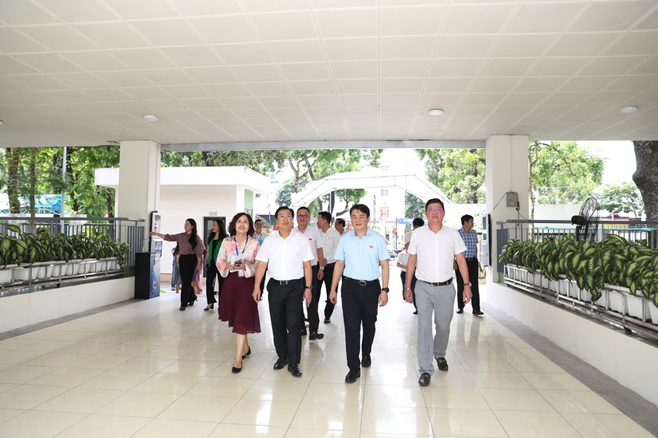 Trước khi làm việc với UBND quận, đoàn đã đi khảo sát thực tế tại Trường Tiểu học Hoàng Diệu, Trường THCS Phúc Xá và Trường THPT Phạm Hồng Thái trên địa bàn quận Ba Đình.