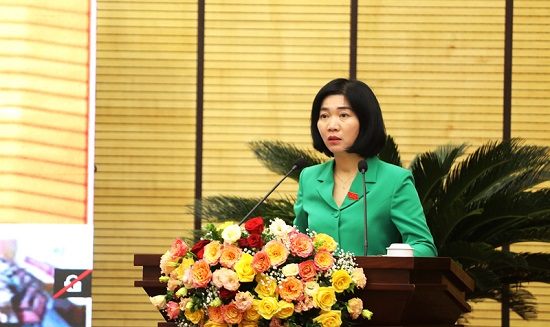 Phó Chủ tịch Thường trực HĐND thành phố Phùng Thị Hồng Hà báo cáo kết quả hoạt động HĐND các cấp 9 tháng năm 2022