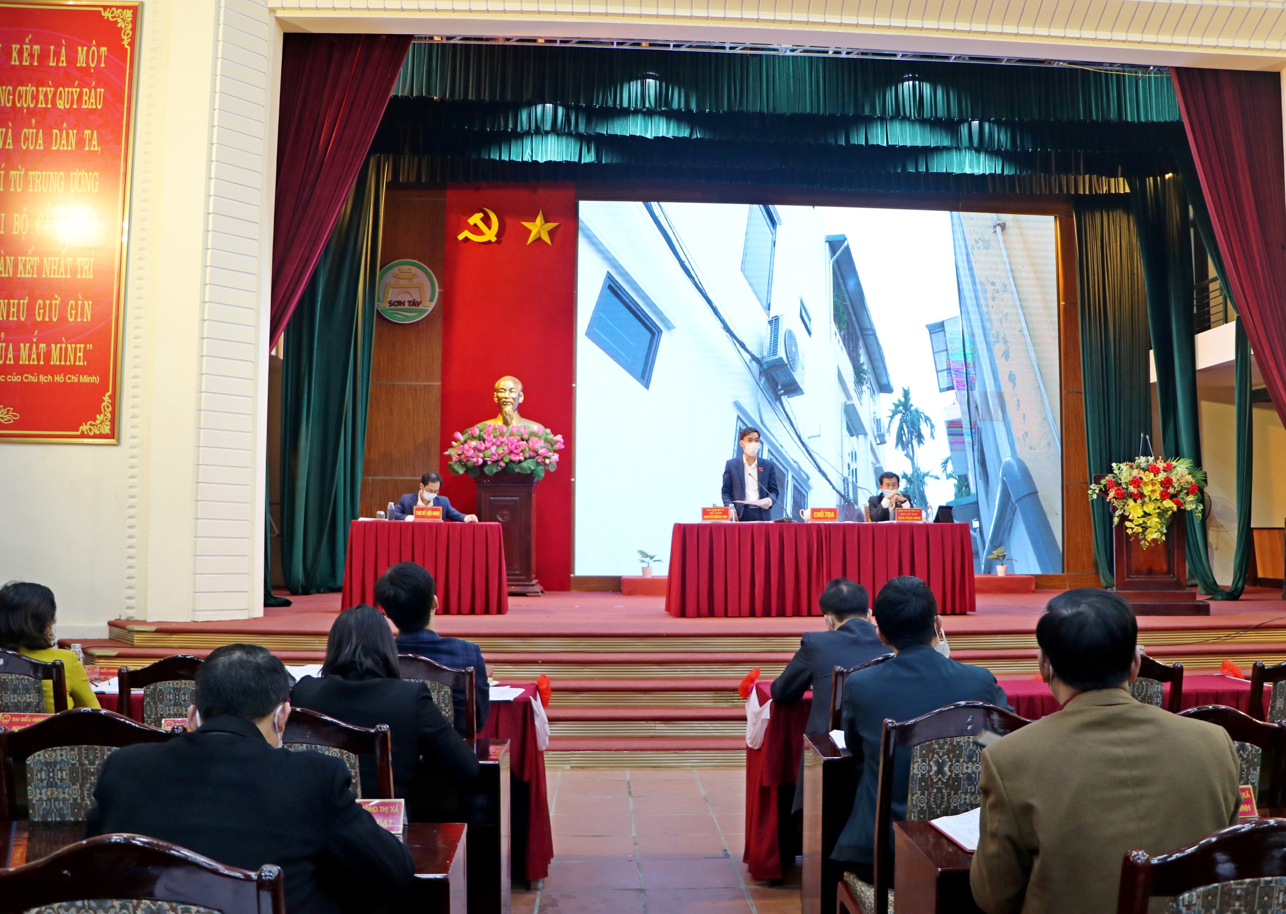 Sáng ngày 06/01/2022, Thường trực HĐND thị xã Sơn Tây tổ chức phiên giải trình giữa hai kỳ họp về công tác quản lý trật tự xây dựng, xử lý vi phạm đối với các trường hợp chuyển mục đích trái phép đất nông nghiệp sang đất phi nông nghiệp trên địa bàn thị xã Sơn Tây (giai đoạn từ ngày 01/9/2019 đến ngày 30/9/2021). Đồng chí Nguyễn Quang Hán - Phó Bí thư Thường trực Thị ủy - Chủ tịch HĐND thị xã, đồng chí Trần Phạm Hùng - Ủy viên Ban Thường vụ Thị ủy, Phó Chủ tịch HĐND thị xã chủ trì điều hành phiên giải trình.