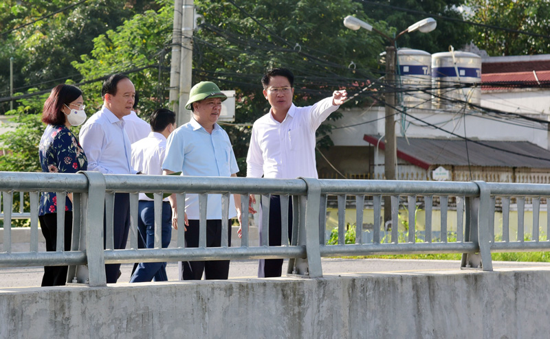 Các đồng chí lãnh đạo Thành phố kiểm tra công tác giải phóng mặt bằng từ khu vực cầu Am đến cầu La Khê (quận Hà Đông) - dự án Cải thiện hệ thống tiêu nước phía Tây thành phố