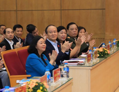 Các đại biểu trung ương và thành phố Hà Nội dự hội nghị tiếp xúc cử tri Đơn vị bầu cử số 1. Ảnh: Viết Thành
