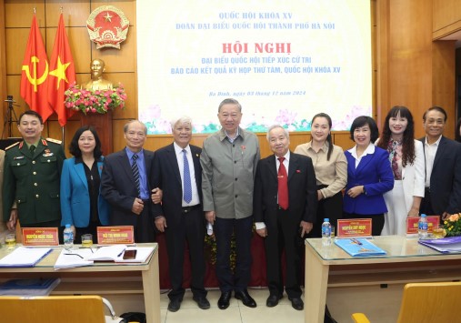 Sáng 3/12/2024, tại trụ sở HĐND-UBND quận Ba Đình, đồng chí Tổng Bí thư Tô Lâm cùng các đại biểu Quốc hội: Trung tướng - Ủy viên Ban Thường vụ Thành ủy - Tư lệnh Bộ Tư lệnh Thủ đô Nguyễn Quốc Duyệt, Giám đốc Sở Giao thông vận tải Hà Nội Nguyễn Phi Thường tiếp xúc cử tri Đơn vị bầu cử số 1 (các quận: Đống Đa, Ba Đình, Hai Bà Trưng) báo cáo kết quả kỳ họp thứ tám, Quốc hội khóa XV.