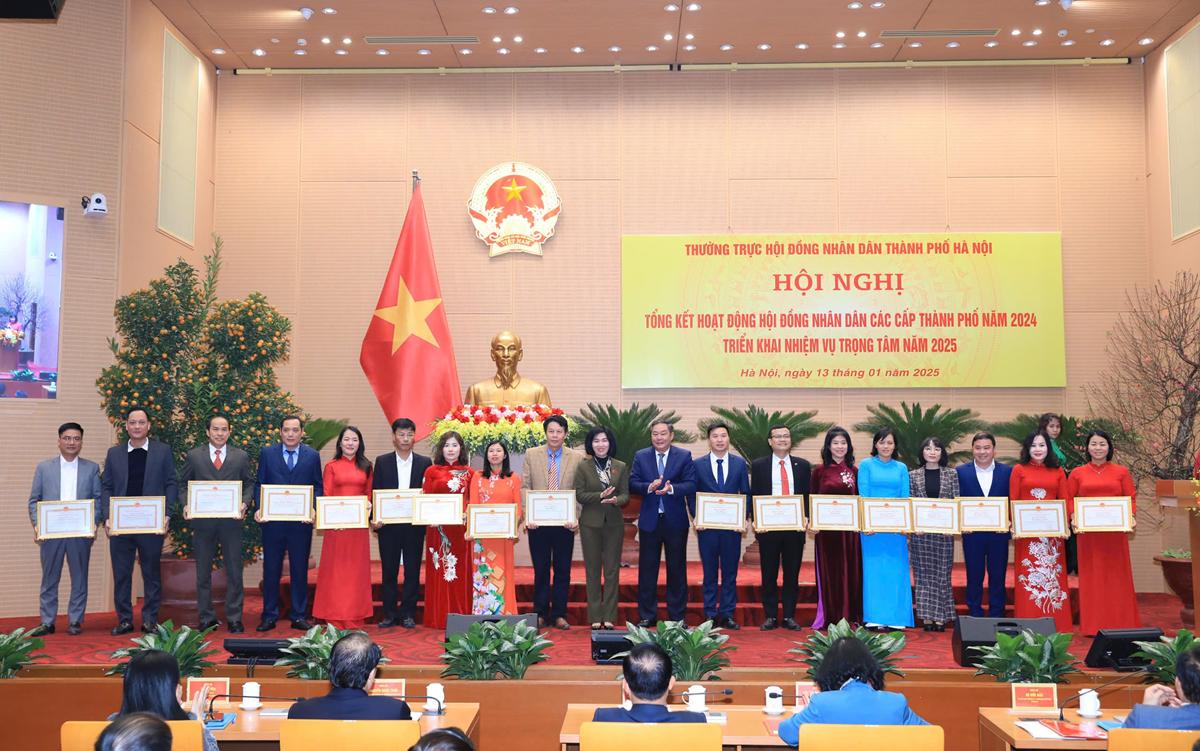 Tại hội nghị, 20 tập thể, cá nhân tiêu biểu xuất sắc thực hiện tốt Đề án số 15-ĐA/TU của Ban Thường vụ Thành ủy và 40 tập thể, cá nhân có thành tích trong thực hiện các chuyên đề và tham gia các hoạt động của HĐND thành phố Hà Nội năm 2024 đã được biểu dương, khen thưởng.