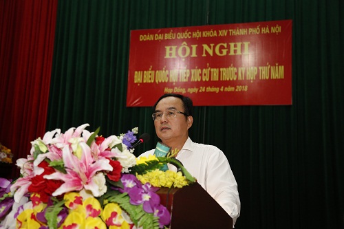 Ông Nguyễn Quốc Bình trình bày trả lời ý kiến, kiến nghị của cử tri của các bộ ngành Trung ương và Thành phố tại kỳ tiếp xúc cử tri sau kỳ họp thứ 4, Quốc hội khóa XIV.