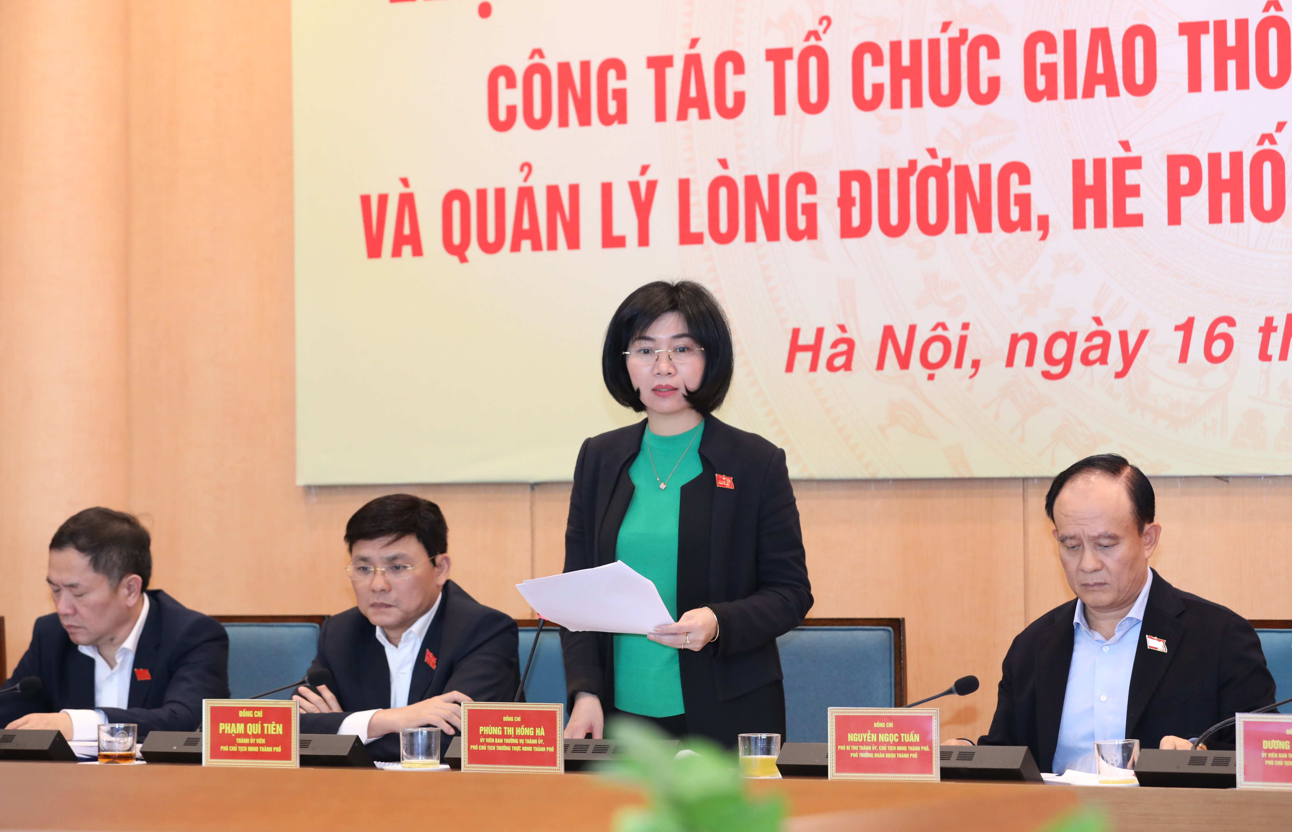 Phó Chủ tịch Thường trực HĐND thành phố Phùng Thị Hồng Hà điều hành phần phát biểu ý kiến