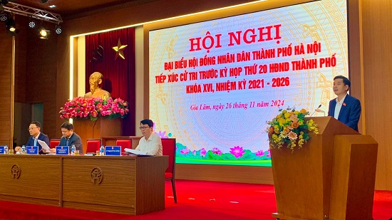Ngày 26/11/2024, đại biểu HĐND thành phố Hà Nội đã tiếp xúc cử tri với một số quận, huyện trước kỳ họp thường lệ cuối năm (kỳ họp thứ 20) HĐND thành phố Hà Nội khóa XVI, nhiệm kỳ 2021-2026.