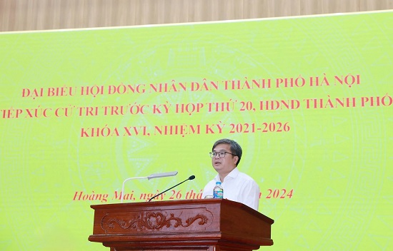 Tại hội nghị tiếp xúc cử tri quận Hoàng Mai (đơn vị bầu cử số 8), đại biểu Trương Việt Dũng, Chánh Văn phòng UBND thành phố Hà Nội thay mặt tổ đại biểu thông báo thời gian và công tác chuẩn bị tổ chức kỳ họp thứ 20 của HĐND thành phố Hà Nội; báo cáo tóm tắt tình hình thực hiện Kế hoạch phát triển kinh tế - xã hội năm 2024, nhiệm vụ phát triển kinh tế - xã hội năm 2025.