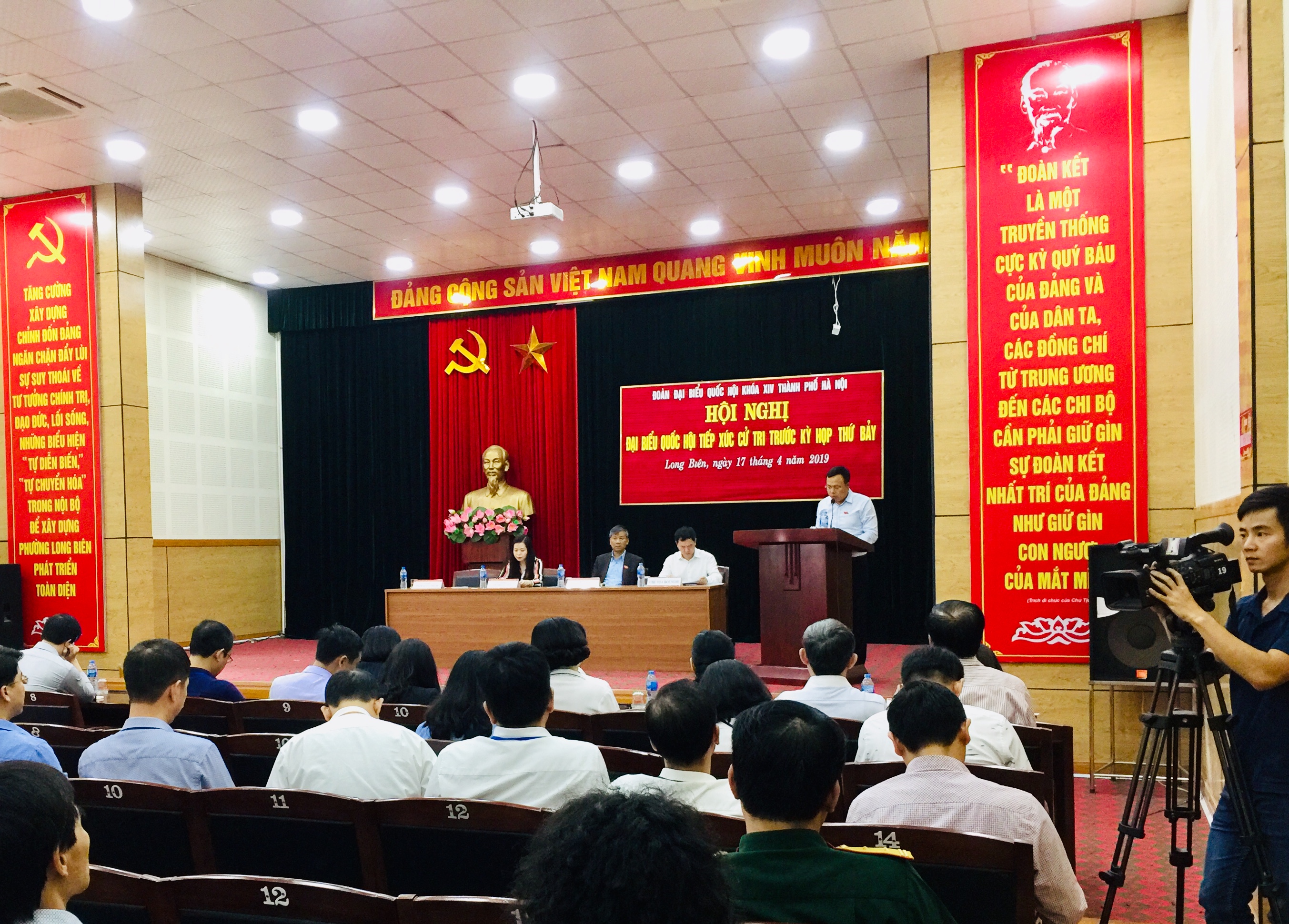 * Cử tri quận Long Biên phản ánh một số vấn đề dân sinh bức xúc như: Cử tri Kiều Văn Đức, phường Phúc Lợi đóng góp ý kiến về Luật Quy hoạch, Luật Đất đai, Luật Hình sự (sửa đổi) đồng thời kiến nghị Quốc hội xem xét, điều chỉnh để Luật phù hợp, hài hòa với lợi ích của người dân.