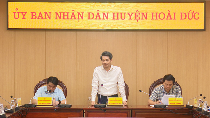 Phát biểu tại hội nghị, Trưởng ban Nội chính Thành ủy Nguyễn Quang Đức đề nghị huyện tiếp tục tập trung để hoàn thành các chỉ tiêu mà Nghị quyết Đảng hội Đảng bộ huyện lần thứ XXIV đã đề ra. Trong đó, cần tập trung ưu tiên cho hoàn thành các tiêu chí phát triển huyện thành quận. Theo Trưởng ban Nội chính Thành ủy, Hoài Đức cần đánh giá cụ thể hơn đối với các tiêu chí chưa đạt để hoàn thành từng nội dung; làm việc với cơ quan chuyên môn của Thành phố để thống nhất đối với việc thực hiện điều chỉnh địa giới hành chính các xã trên địa bàn cũng như đầu tư cơ sở vật chất đối với các trường học công lập trên địa bàn huyện do Thành phố quản lý; khai thác tốt nguồn lực, tăng cường các giải pháp để đảm bảo thu thường xuyên. Đẩy nhanh tiến độ triển khai thực hiện, thi công các dự án đầu tư bệnh viện, công viên cây xanh huyện. Tiếp tục quan tâm và phối hợp để giải quyết ý kiến, kiến nghị của cử tri huyện trong các kỳ tiếp xúc với Đại biểu HĐND Thành phố./