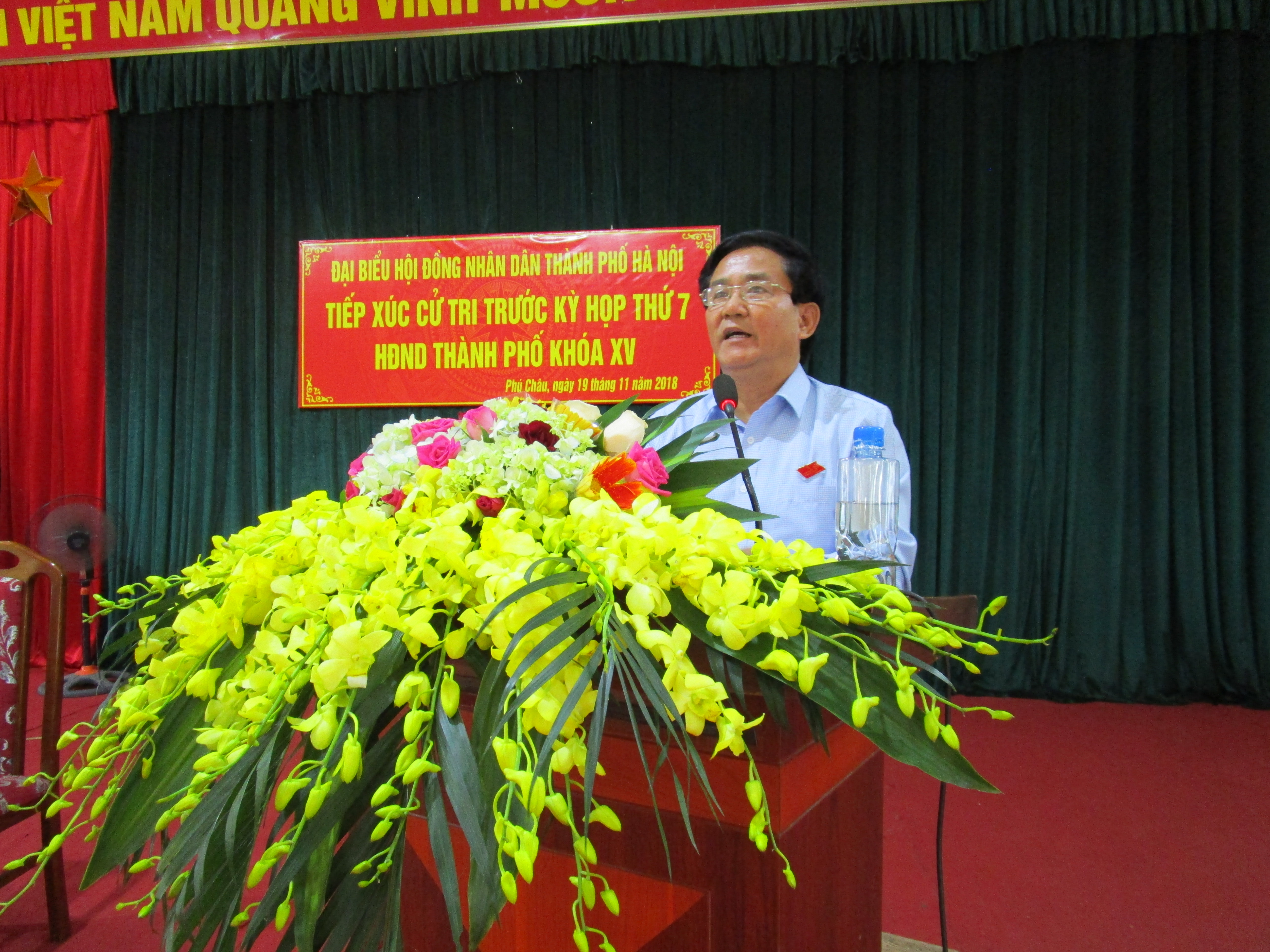 Ngày 19/11/2018, Tổ đại biểu HĐND Thành phố gồm có: Ông Hoàng Thành Thái - Phó Giám đốc Sở Lao động -TBXH; ông Hoàng Huy Được - Đoàn luật sư thành phố Hà Nội; ông Chu Văn Liên - UVBTV Huyện ủy, Phó Chủ tịch HĐND huyện đã tiếp xúc cử tri trước kỳ họp thứ 7 HĐND Thành phố tại xã Phú Châu, huyện Ba Vì. Dự và tiếp xúc có đồng chí Nguyễn Văn Hà, Phó Bí thư Thường trực Huyện ủy, Chủ tịch HĐND huyện, lãnh đạo UBND huyện, HĐND huyện, một số phòng ban của huyện, lãnh đạo 4 xã Tản Hồng, Châu Sơn, Phú Phương và đại diện cử tri xã Phú Châu.