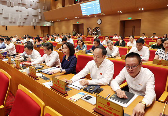 Các đại biểu HĐND Thành phố bấm nút thông qua nghị quyết