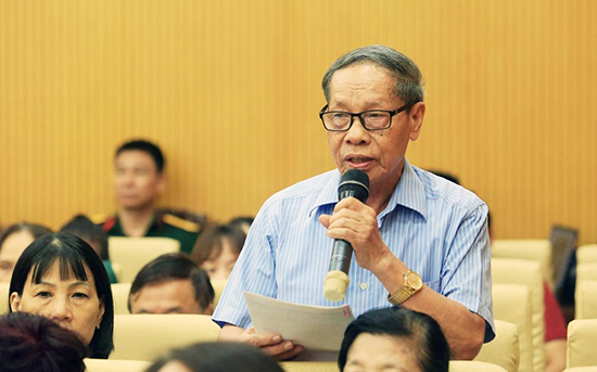 Cử tri quận Đống Đa phát biểu ý kiến tại hội nghị.