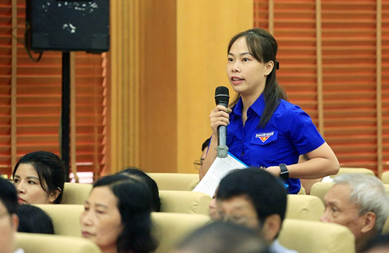 Cử tri quận Hai Bà Trưng phát biểu ý kiến tại hội nghị.
