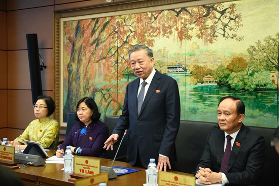 Chủ trì buổi thảo luận tại tổ Hà Nội có đồng chí Tô Lâm, Tổng Bí thư Ban Chấp hành Trung ương Đảng Cộng sản Việt Nam; đồng chí Bùi Thị Minh Hoài, Ủy viên Bộ Chính trị, Bí thư Thành ủy, Trưởng đoàn ĐBQH thành phố Hà Nội; đồng chí Nguyễn Ngọc Tuấn, Phó Bí thư Thành ủy, Chủ tịch HĐND Thành phố, Phó Trưởng đoàn ĐBQH thành phố Hà Nội; đồng chí Phạm Thị Thanh Mai, Phó Trưởng đoàn chuyên trách Đoàn ĐBQH thành phố Hà Nội.