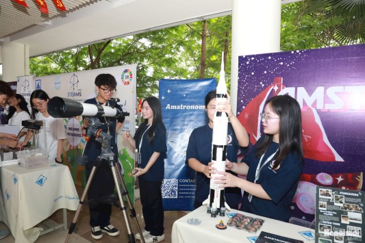 Học sinh Trường THPT chuyên Hà Nội - Amsterdam trải nghiệm phòng học STEM được Tổng Bí thư Tô Lâm tặng. Ảnh: Viết Thành