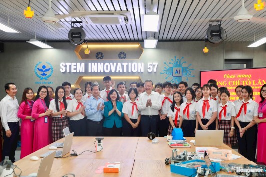 Nhằm động viên, truyền cảm hứng, động lực cho ngành Giáo dục và Đào tạo Thủ đô và cả nước thực hiện Nghị quyết số 57-NQ/TƯ ngày 22-12-2024 của Bộ Chính trị về "Đột phá phát triển khoa học, công nghệ, đổi mới sáng tạo và chuyển đổi số quốc gia", Tổng Bí thư Tô Lâm đã trao tặng 2 phòng học STEM cho Trường THPT Chuyên Hà Nội - Amsterdam và Trường THCS Cầu Giấy. Phòng học mang tên “STEM Innovation 57” với đầy đủ trang thiết bị phục vụ việc dạy và học STEM.