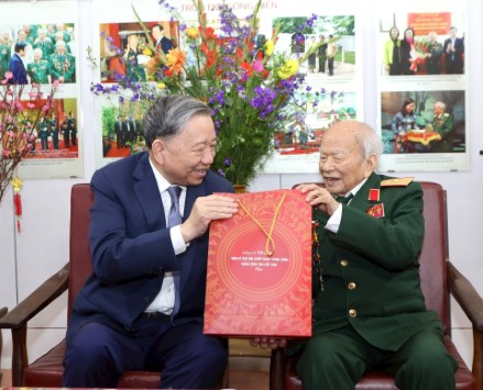 * Nhân dịp này, Tổng Bí thư Tô Lâm đã đến nhà riêng thăm, chúc Tết Thiếu tướng Huỳnh Đắc Hương, 105 tuổi, 85 năm tuổi Đảng, nguyên Trưởng đoàn chuyên gia Việt Nam tại Lào, nguyên Thứ trưởng Bộ Lao động - Thương binh và Xã hội, Trưởng ban liên lạc các chiến sĩ cách mạng bị địch bắt và tù đày.