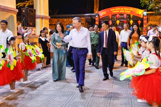 Tối 12/11, nhân kỷ niệm 94 năm Ngày truyền thống Mặt trận Tổ quốc Việt Nam (18/11/1930 - 18/11/2024), Tổng Bí thư Tô Lâm đã đến dự, chung vui "Ngày hội Đại đoàn kết toàn dân tộc" của liên địa bàn dân cư phường Quán Thánh, quận Ba Đình, thành phố Hà Nội.