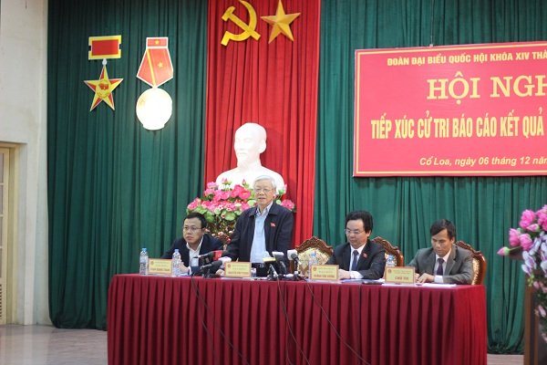 Kết thúc kỳ họp thứ 2, Quốc hội khóa XIV, sáng 6/12Tổng Bí thư Nguyễn Phú Trọng và các đại biểu Quốc hội thuộc Đoàn ĐBQH thành phố Hà Nội đã về tiếp xúc cử tri tại xã Cổ Loa (Đông Anh, Hà Nội).