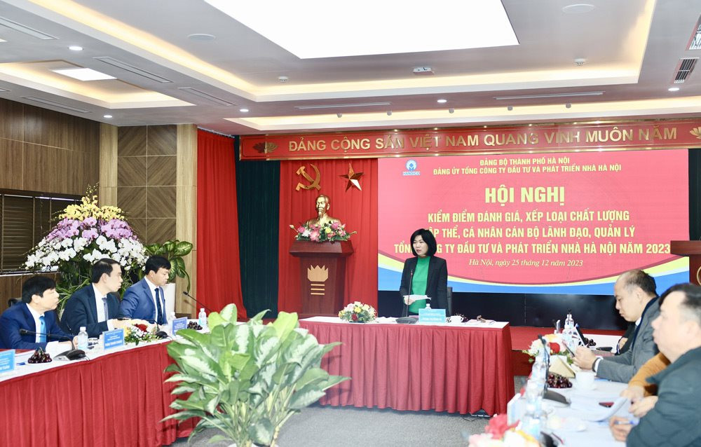 Ngày 25-12, Ủy viên Ban Thường vụ Thành ủy, Phó Chủ tịch Thường trực HĐND thành phố Hà Nội Phùng Thị Hồng Hà đã dự hội nghị kiểm điểm đánh giá, xếp loại chất lượng tập thể, cá nhân cán bộ lãnh đạo, quản lý Tổng công ty Đầu tư và Phát triển nhà Hà Nội năm 2023.