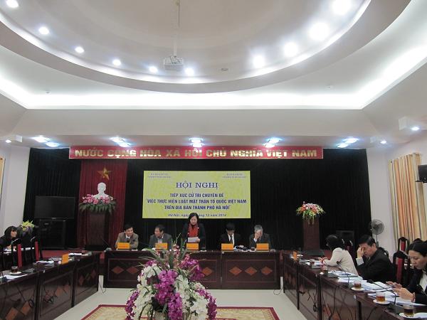 Ngày 25/12/2014, Đoàn ĐBQH thành phố Hà Nội đã tổ chức Hội nghị tiếp xúc cử tri chuyên đề "Việc thực hiện Luật Mặt trận tổ quốc Việt Nam trên địa bàn thành phố Hà Nội". Tại hội nghị, Đại biểu Quốc hội đã tiếp xúc với hơn 60 cử tri là đại diện lãnh đạo, nguyên lãnh đạo Ủy ban MTTQ Thành phố, các quận, huyện, thị xã và một số phường, xã trên địa bàn Thành phố.