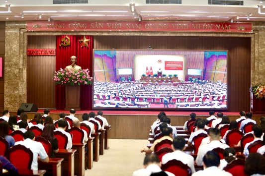 Các đại biểu tham dự hội nghị tại điểm cầu Thành ủy Hà Nội. Ảnh: Viết Thành