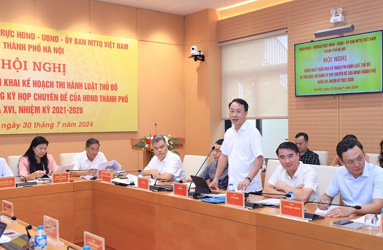 Phát biểu tại hội nghị, Phó Chủ tịch Thường trực UBND thành phố Lê Hồng Sơn nêu 5 nội dung triển khai Luật Thủ đô năm 2024. Trong đó, cần tuyên truyền, phổ biến thống nhất về nội dung Luật Thủ đô trên địa bàn toàn thành phố; rà soát từng lĩnh vực để xác định các nhiệm vụ xây dựng các văn bản quy phạm pháp luật quy định chi tiết; giao UBND thành phố Hà Nội thành lập tổ công tác của thành phố xây dựng các văn bản quy phạm pháp luật; bảo đảm các cơ chế, điều kiện đặc thù về kinh phí, nhân lực xây dựng các văn bản quy phạm pháp luật liên quan đến Luật Thủ đô.