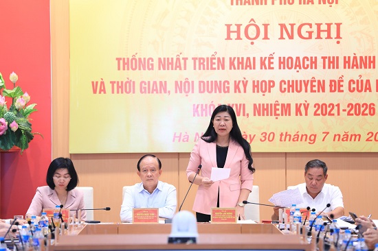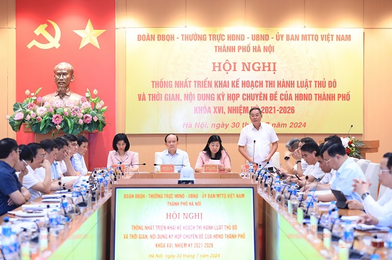 Sáng 30-7, Đoàn đại biểu Quốc hội, Thường trực HĐND, UBND, Ủy ban Mặt trận Tổ quốc Việt Nam thành phố Hà Nội tổ chức hội nghị thống nhất triển khai kế hoạch thi hành Luật Thủ đô và thời gian, nội dung kỳ họp chuyên đề của HĐND thành phố khóa XVI, nhiệm kỳ 2021-2026.