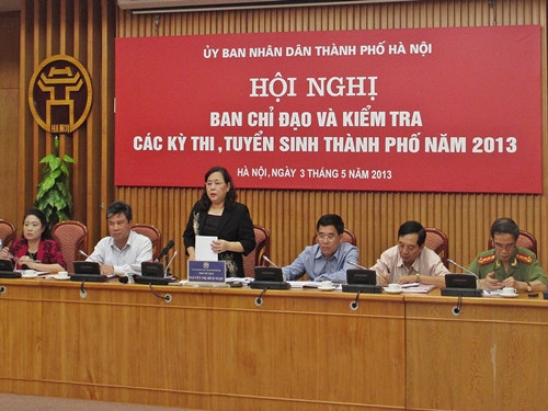 Chiều 3/5, Phó Chủ tịch UBND TP Nguyễn Thị Bích Ngọc đã chủ trì hội nghị trực tuyến của Ban chỉ đạo và kiểm tra các kỳ thi, tuyển sinh thành phố Hà Nội năm 2013 với sự tham gia của 29 điểm cầu tại các quận, huyện.