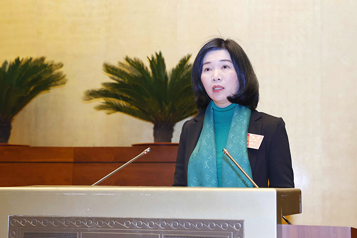 Phó Chủ tịch Thường trực HĐND thành phố Hà Nội Phùng Thị Hồng Hà trình bày tham luận tại hội nghị