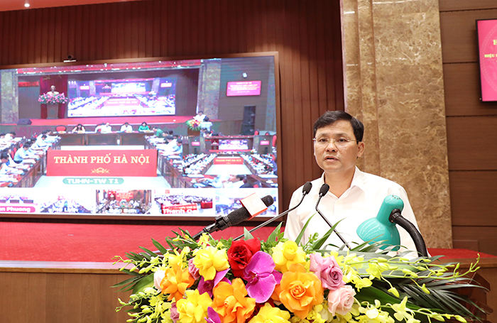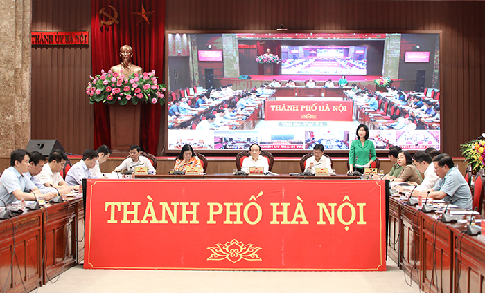 Hội nghị được tổ chức theo hình thức trực tiếp kết hợp trực tuyến từ điểm cầu Hội trường Thành ủy Hà Nội đến điểm cầu các quận, huyện, thị xã và xã, phường, thị trấn