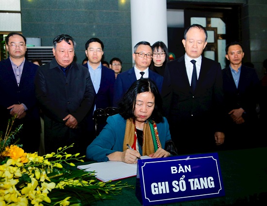 Thay mặt Đảng bộ, chính quyền và nhân dân Thủ đô ghi sổ tang, Bí thư Thành ủy Hà Nội Bùi Thị Minh Hoài xúc động viết: