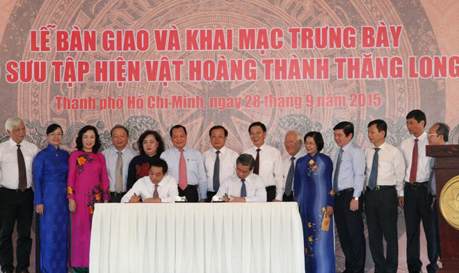 Ngày 28-9 tại TP Hồ Chí Minh, Thành ủy, HĐND, UBND, UBMT TQVN TP Hà Nội đã phối hợp Thành ủy, HĐND, UBND, UBMT TQVN TP Hồ Chí Minh tổ chức Lễ bàn giao và Khai mạc trưng bày “Bộ sưu tập hiện vật Hoàng thành Thăng Long” tại Bảo tàng TP Hồ Chí Minh.