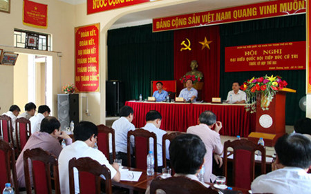 Hội nghị TXCT ở tại xã Khánh Thượng, huyện Ba Vì, nhiều ý kiến của cử tri phản ánh với Đoàn đại biểu Quốc hội thành phố Hà Nội quan tâm hơn nữa về vấn đề điện, đường, trường, trạm để huyện Ba Vì có điều kiện tăng tốc, phát triển kinh tế - xã hội hơn nữa.