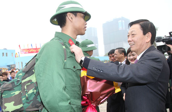 Sáng 15/2, Bí thư Thành ủy Phạm Quang Nghị, Chủ tịch UBND TP Nguyễn Thế Thảo, Chủ tịch HĐND TP Ngô Thị Doãn Thanh, Phó Bí thư Thường trực Thành ủy Nguyễn Công Soái, Phó Bí thư Thành ủy Tưởng Phi Chiến cùng các đồng chí trong Ban Thường vụ Thành ủy, Thường trực HĐND, UBND, Hội đồng Nghĩa vụ quân sự TP đã có mặt tại điểm giao nhận quân, động viên các tân binh trước giờ lên đường.