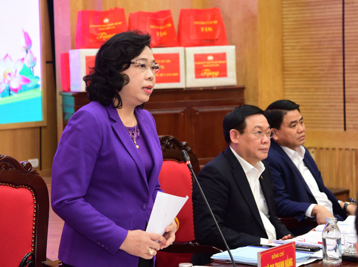 Phó Bí thư Thường trực Thành uỷ Ngô Thị Thanh Hằng phát biểu tại buổi làm việc của Bí thư Thành ủy với Quận ủy Ba Đình