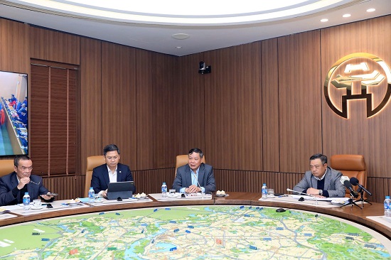 Ủy viên Trung ương Đảng, Phó Bí thư Thành ủy, Chủ tịch UBND thành phố Hà Nội, Phó Trưởng ban Thường trực Ban Chỉ đạo của Thành ủy về thực hiện Nghị quyết số 57-NQ/TW Trần Sỹ Thanh và các đồng chí Phó Bí thư Thường trực Thành ủy, Phó Trưởng ban Chỉ đạo của Thành ủy về thực hiện Nghị quyết số 57-NQ/TW Nguyễn Văn Phong chủ trì hội nghị.
